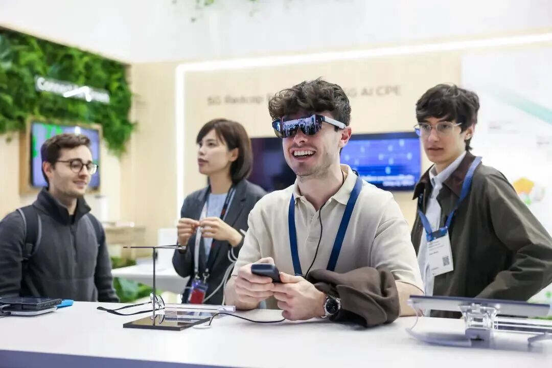 雷鸟展台的业内首款集成eSIM通信模块的双目全彩AR眼镜,吸引众多专业观众争相试戴,沉浸式感受无需手机即可通过眼镜直接拨打电话、接听语音、进行多模态AI对话、实时跨语言翻译服务等奇妙体验。